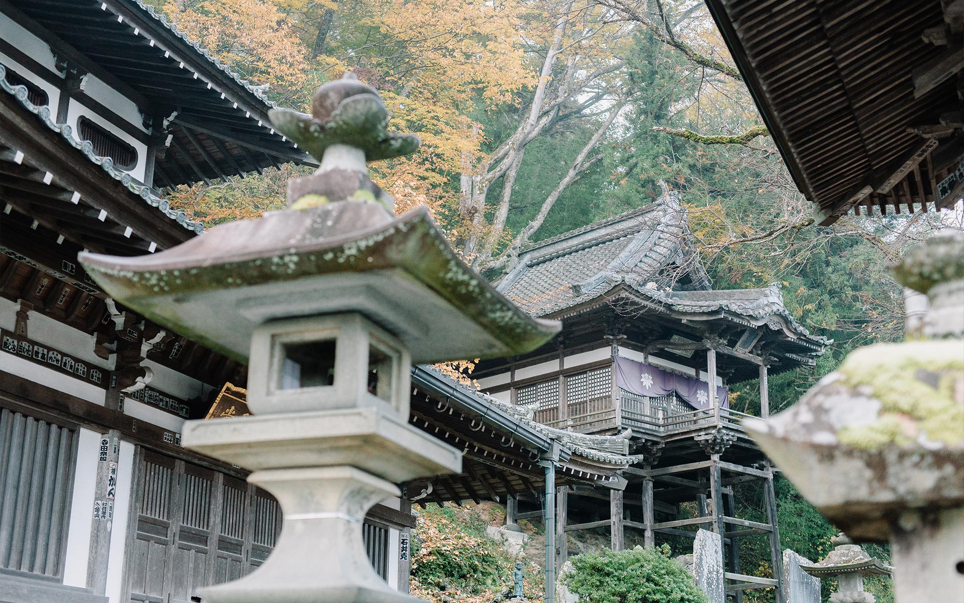 別所温泉・北向観音の本坊。本堂裏は、北向観音出現霊地があり、重要文化財石造多宝塔が建てられています。多宝塔は鎌倉時代の建立で、さらに古文書等から、常楽寺は平安時代末には天台教学の拠点として栄えたことが知られています。境内には、樹齢350年といわれる御船の松や、七色もみじなどの美しい紅葉が楽しめます。
