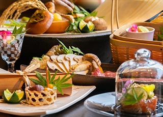 厳選した松茸の味と風味を生かし、地元の新鮮な野菜や信州産黒毛和牛、サーモンなど信州産食材をふんだんに使用したお料理をお楽しみいただけます。
