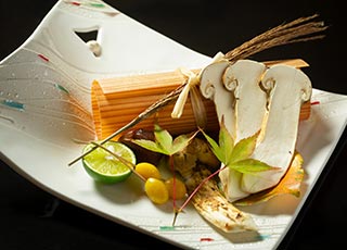 地元産の松茸にこだわり、職人の丁寧な仕事で仕上げた松茸料理です。使用する松茸は厳選した松茸を使用。9月17日~11月6日までは全プランの献立に松茸の土瓶蒸しと松茸ご飯が付きます。