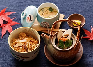 松茸土瓶蒸し・松茸ホイル焼き・信州産黒毛和牛と松茸グリル焼きなど複数の選べるコースでご用意。自慢の会席料理とともにお楽しみください。